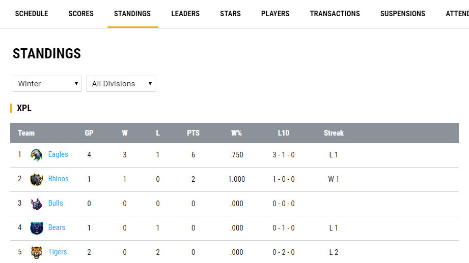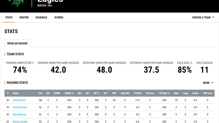 Display games with all the important details. Players can filter games for their team.