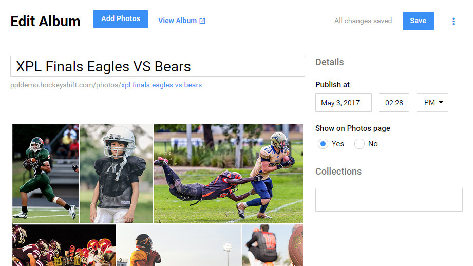 Create new albums and upload multiple photos at once.